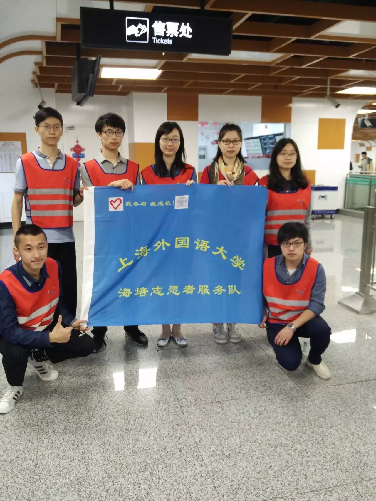 常言道:“赠人玫瑰,手有余香”。争当志愿者,是一份荣誉,更是一份提升自我和服务社会的统一。4月22日,上海外国语大学海外合作学院日本直通车项目在上海市青年志愿者协会的带领下,参加了轨道交通2/12/13号线南京西路站地铁志愿者社会公益活动,为不熟悉地铁站周围环境或需要帮助的乘客提供便利。