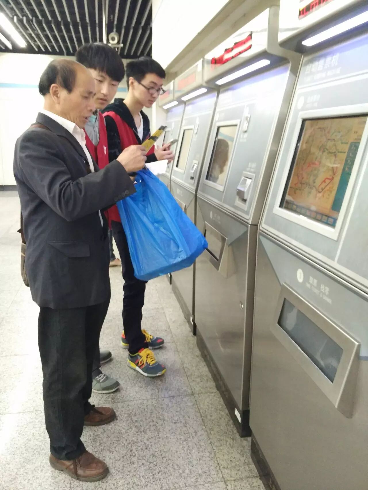 晚上5点后开始出现晚高峰,客流量的剧增加大了对学生志愿者的要求。同学们也开始忙的不可开交,但即使如此大家依旧细致耐心,为行人解决了一个又一个问题,得到了领队人老师和行人的一致好评。
