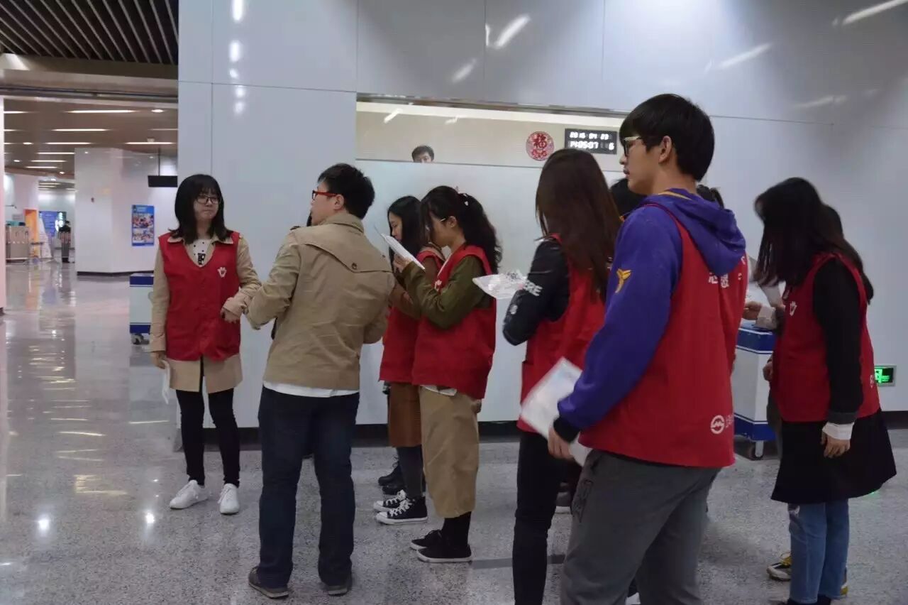 两点整,我们准时地开始了志愿者活动,我们被分别分配到了蝴蝶墙,自动扶梯上下口。汉中路地铁站包含了一号线、十二号线、十三号线,是一站人流量大、周围马路复杂的换乘大站。志愿者的工作是琐碎的,碰到过大妈要求帮忙与蝴蝶墙合影拍照,更多地则是询问厕所位置和换乘信息。三个小时站下来,浑身腰酸背痛,好似在参加军训,然而我们却不感到厌烦,体会着帮助别人的心情,享受着作为志愿者的每一秒。