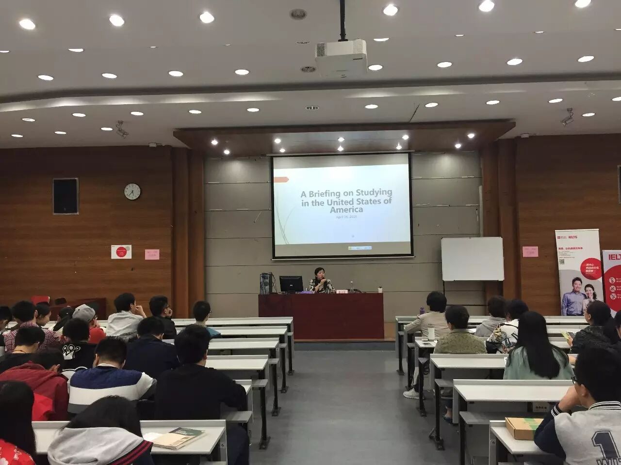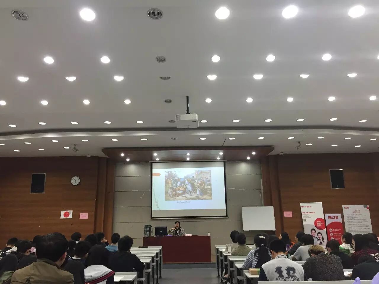 2016年4月26日,上海外国语大学出国留学人员培训部及海外合作学院“海培留学讲坛”第二期开讲。陈立青副教授以“学在美国”为题,给在美国纽约州立大学项目、英国兰卡斯特大学项目、加拿大留学预科项目、澳大利亚新南威尔士大学预科项目、美国新泽西学院项目以及英国大学2+2项目的同学们分享了在美国访学期间的种种见闻。许多公派留学出国的学生也慕名而来。