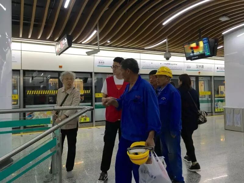 我们的工作非常简单,帮助不了解地铁站线路和出口的乘客们给出方向和指导,让他们节约时间同时也更方便他们的出行。由于是新增设的地铁站,乘客们对换乘和出口的线路都不是很熟悉,所以这也是很多乘客向志愿者求助的原因之一,志愿者们也很认真负责的一一给乘客指明方向。一大部分乘客是中老年人,可能向志愿者提问的时候语言是一大障碍,可是志愿者仍然耐心的为他们指路,提供帮助,尽自己所能帮助他们。