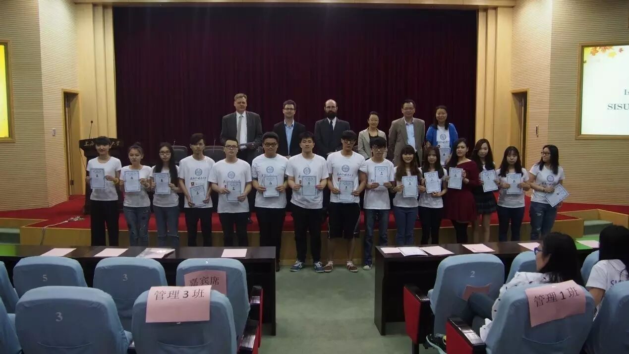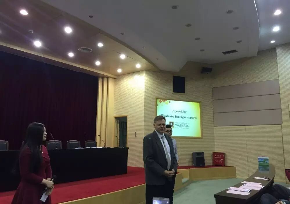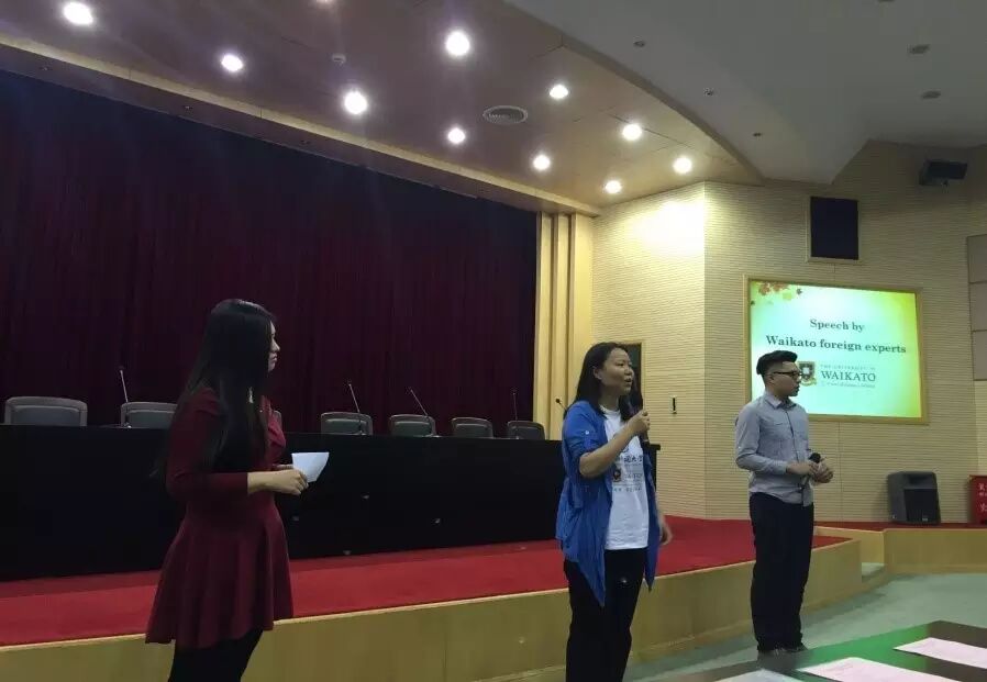 2016年5月16日,2014级新西兰怀卡托大学2+2项目结业典礼在上海外国语大学虹口校区第一报告厅举行。海外合作学院汪小玲院长、朱华平副院长、张缅书记,新西兰外教团队Paul、Michael和Romain,中教代表王俭、韩薇、郑华俊老师,招生办公室老师以及2014级怀卡托大学项目全体学生共同出席了典礼。来自新西兰项目管理学院的殷清雯和胡狄同学主持了本次典礼。